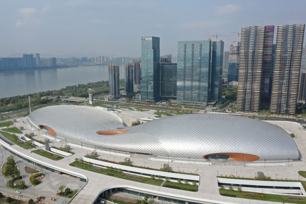 2021年8月2日拍摄的杭州奥体中心场馆群(无人机照片)。新华社发(杭州亚组委供图)