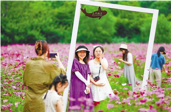 6月4日,湖州市德清县下渚湖街道山地皇,粉色波斯菊竞相绽放,吸引众多市民打卡游玩。近年来,下渚湖街道充分挖掘和发挥当地自然景观资源和区域优势,推进美丽乡村建设。 拍友 王正 摄