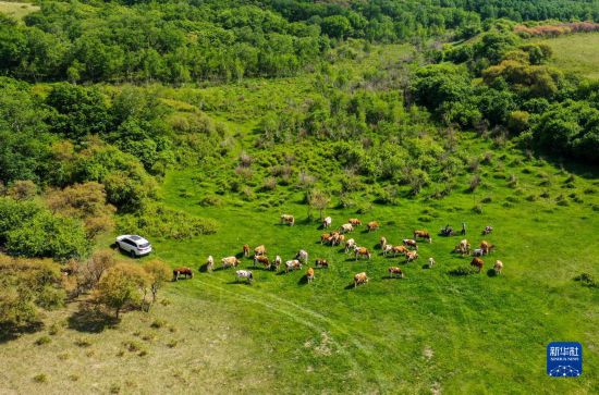 6月15日,牛群在草原上觅食(无人机照片)。