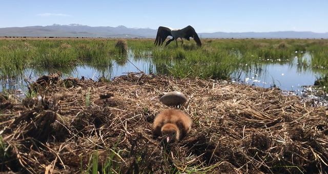 若尔盖湿地今年第一只黑颈鹤宝宝出生(如科 摄)