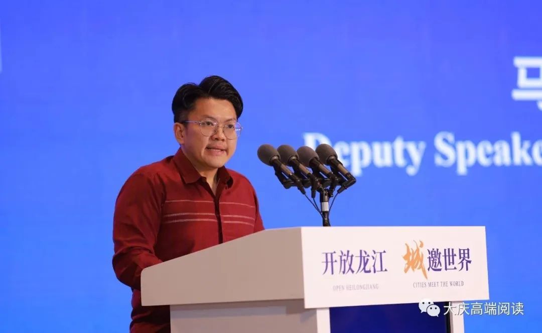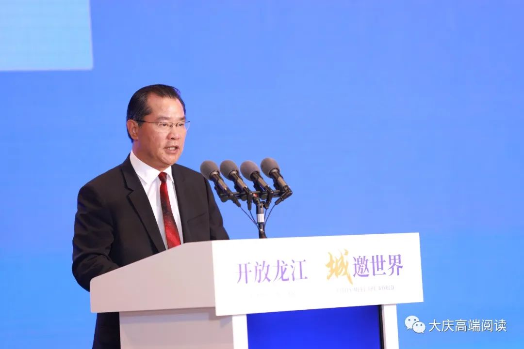 蒙古国色楞格省省长那·拉嘎瓦道尔吉、上海合作组织秘书处副秘书长洛格维诺夫、马来西亚彭亨州议会副议长李政贤、法国驻沈阳总领事罗毅睿先后致辞,高度赞赏中国进一步扩大对外开放的重大举措,回顾本国与黑龙江的合作成果,积极评价黑龙江经济社会发展显著成效,期待在“一带一路”框架下,与黑龙江在更多领域展开交流合作。