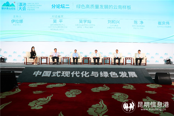 国研中心习近平生态文明思想研究室常务副主任吴平、云南省生态环境科学研究院副院长吴学灿、云天化集团总经理刘和兴、昆明市滇池管理局局长陈净、北京林业大学副教授崔庆伟,就“绿色高质量发展的云南样板”主题进行了讨论。