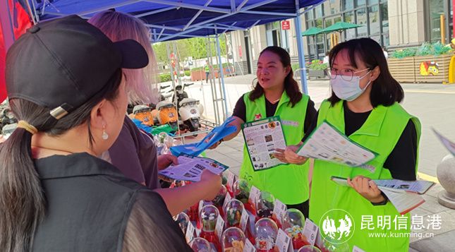昆明信息港讯 记者李丽朱 今年6月26日是第36个国际禁毒日,为进一步加大禁毒宣传教育工作力度,延伸禁毒宣传的覆盖面,提高辖区群众对毒品危害的认知度,6月19日,新域社区党委联合黑林铺街道禁毒办在辖区内开展“健康人生、绿色无毒”为主题宣传活动。