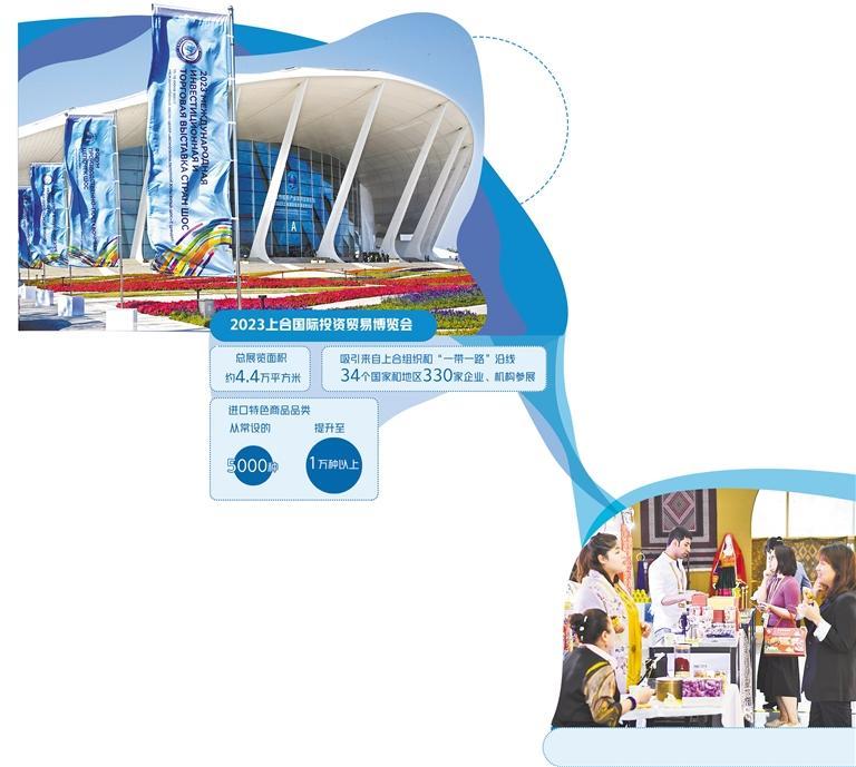 可爱的俄罗斯套娃、鲜艳的阿富汗地毯、色彩斑斓的果盘、琳琅满目的挂饰……同期在青岛·上合之珠国际博览中心举办的2023上合国际投资贸易博览会,总展览面积约4.4万平方米,吸引了来自上合组织和“一带一路”沿线34个国家和地区的330家企业、机构参展,进口特色商品品类从常设的5000种提升至1万种以上。