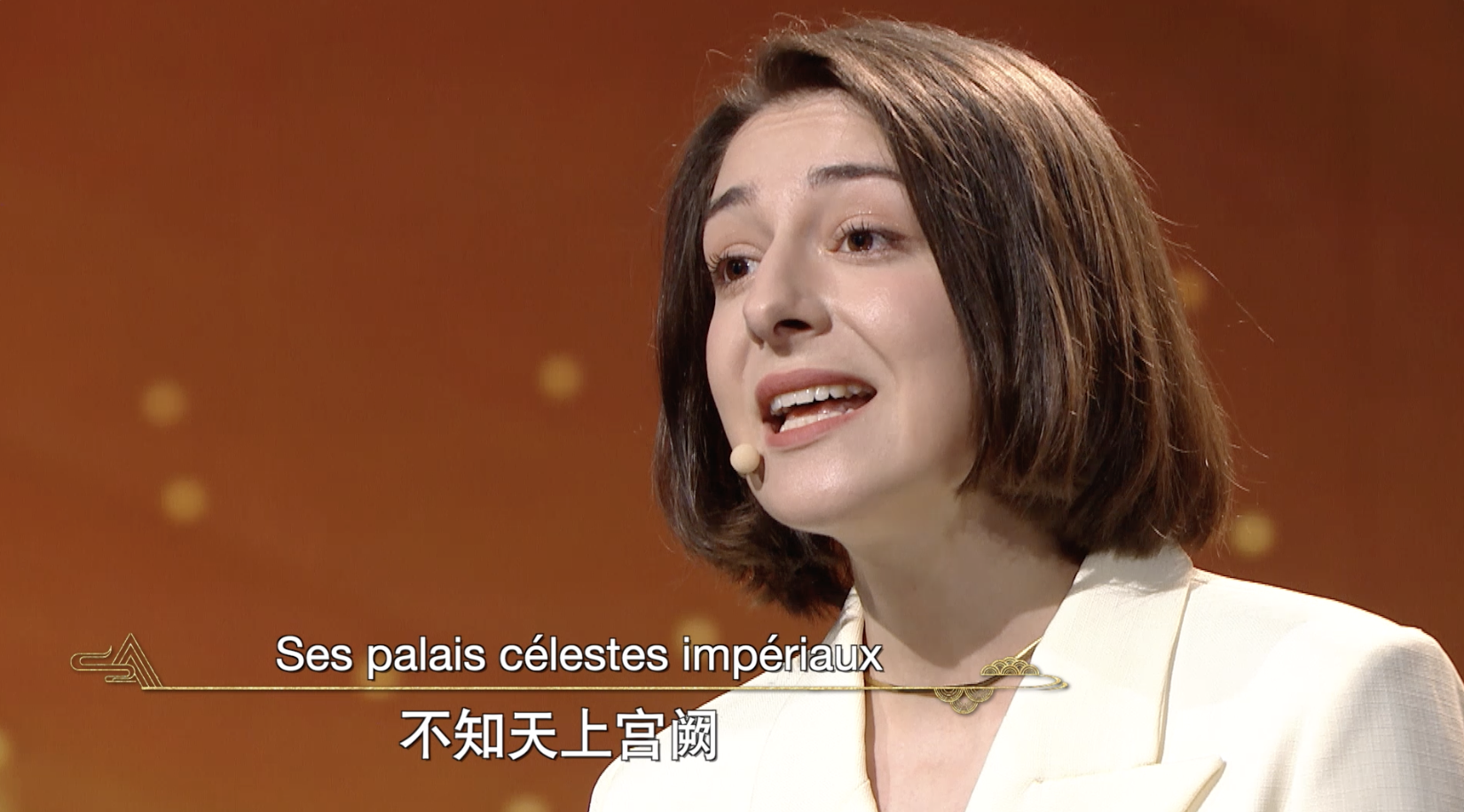 苏东坡的《水调歌头·明月几时有》流传千年,经久不衰,爱黎自己翻译、翻唱的法语版明快温婉,别有韵味。中国传统文化与法式浪漫风情在词曲中交融碰撞,带给观众耳目一新的视听体验和心灵感受。