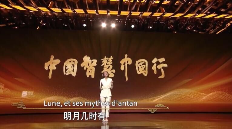 视频中,来自法国的漂亮女孩爱黎,在江苏卫视《中国智慧中国行》的舞台上浪漫演绎法语版“明月几时有”,惊艳四座。