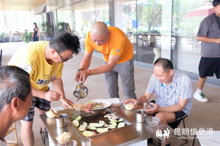 午餐时间,盲友们围坐在一起,在志愿者的帮助下体验了户外烧烤。随后,由云南艺术学院播音主持专业的7位同学为盲友们带来了双口相声、朗诵、歌曲合唱等形式多样的表演,获得了盲友们的阵阵掌声。