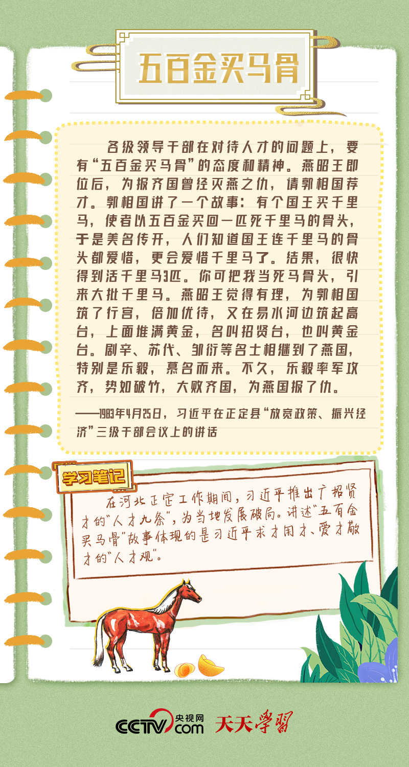 习近平总书记善讲故事。在会议发言、出访演讲、调研谈话等场合,他常常以中华传统文化故事阐释道理、传达深意、感染他人,这些故事具体而生动、通俗而深刻。端午佳节之际,央视网《天天学习·学习笔记》特撷取总书记讲述过的中华传统文化故事,与您一起体会故事中的深意。