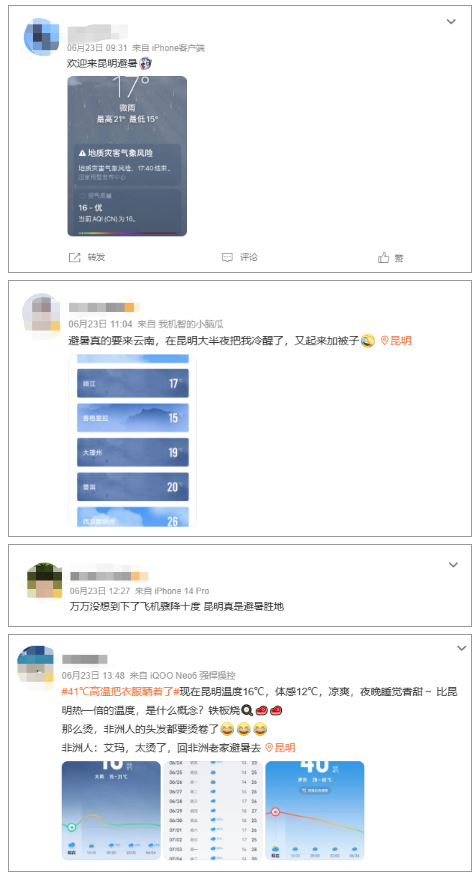 除了丰富的旅游资源,凉爽的天气也是端午假期游客选择到昆明旅游的重要因素。飞猪数据显示,端午假期,西北、西南和沿海城市等避暑目的地持续升温,昆明、海口、三亚、乌鲁木齐、厦门成为端午假期预订热度最高的避暑游目的地。飞往云南的机票预订量同比增长超4.5倍,其中目的地为昆明的机票预订量同比增长超3.7倍;昆明高星酒店预订量同比增长超19.5倍,民宿预订量同比增长超35.9倍。