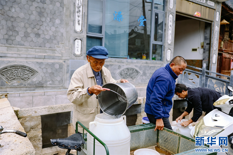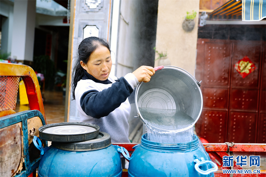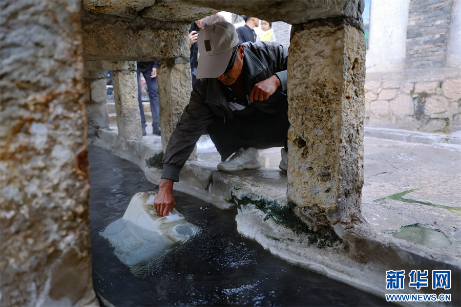炼渡温泉水井边,勤劳质朴的白族村民,在这里打一桶温泉水带走,用于洗衣做饭(6月14日摄)。新华网发 (胡妤雅 摄)