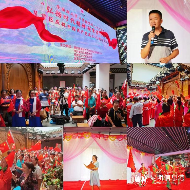昆明信息港讯 记者曹芸 6月25日,在七一建党节到来之际,呈贡区文联积极动员各协会文艺团队,以“弘扬时代精神·凝聚前行力量”为主题,组织开展呈贡区庆祝中国共产党成立102周年文艺演出。