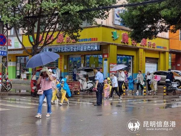 民警全程对幼儿行走过程中的交通安全进行监督,引导车辆注意避让,指挥幼儿有序行走,在突然大雨的情况下,帮助孩子们找寻安全地点进行避雨,并利用警车将没有携带雨具的同学成功“摆渡”到校园内。