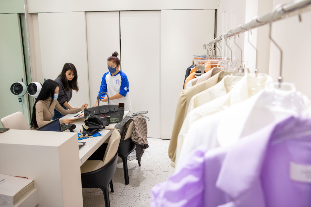 客商在浙江省绍兴市柯桥区中国轻纺城市场内选购服装(2022年11月11日摄)。新华社记者 江汉 摄