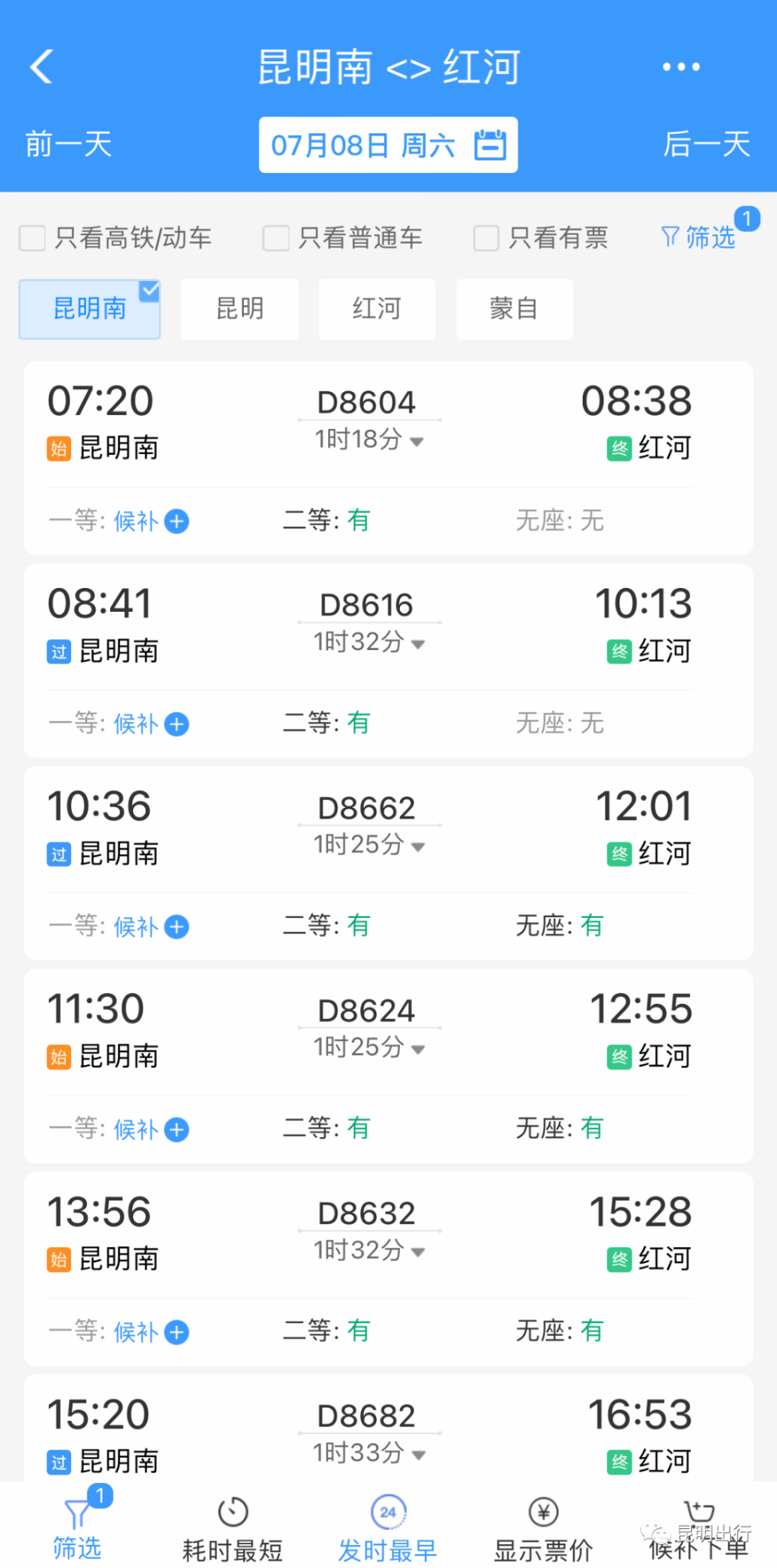 弥蒙高铁多趟动车时刻、停站有调整。其中: