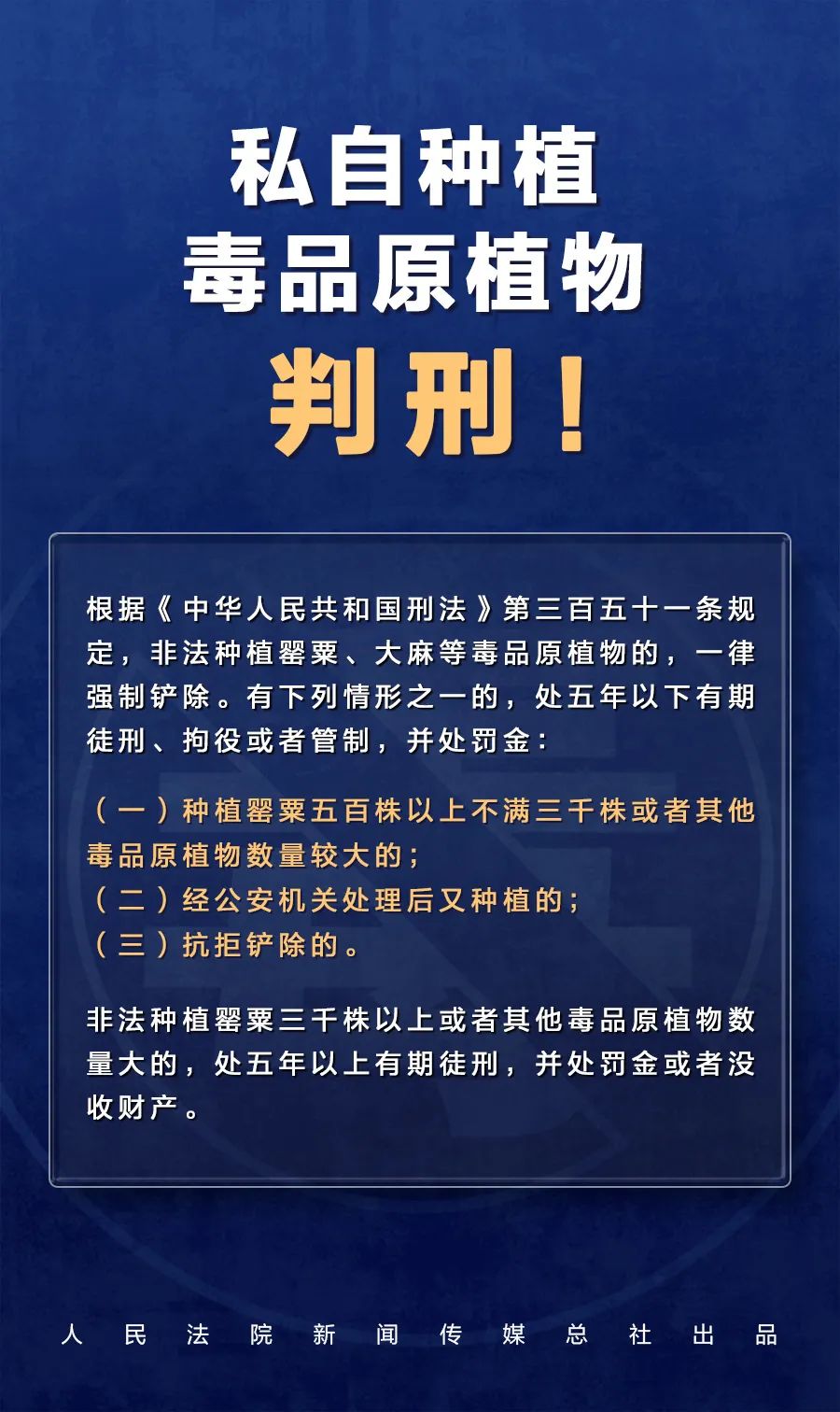 今天是6·26国际禁毒日,对于毒品犯罪我国都有哪些法律规定?吸毒、种植毒品、走私贩毒,都要受到哪些刑罚?