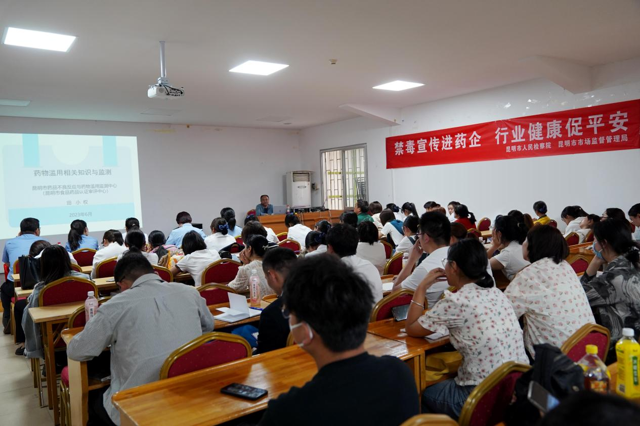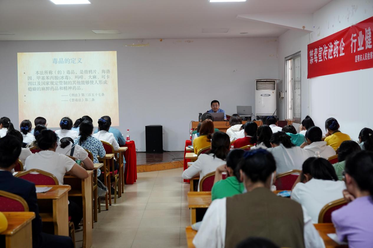 昆明信息港讯 记者张艺璇 6月25日下午,在“6·26”国际禁毒日到来之际,昆明市市场监督管理局和昆明市人民检察院联合到一心堂昆明西部药城一店开展2023年“全民禁毒宣传月”法治宣讲活动。全市一心堂零售药店负责人近百余人参会,切实提高药品从业人员的识毒、防毒、拒毒能力,严防易制毒类药品从药用渠道流失,为禁毒示范城市创建贡献市场监管力量。