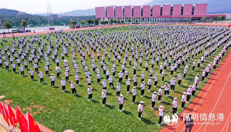 下午,千名理工学子齐聚科技楼广场和田径场,齐跳佤族健身操,少数民族的文化魅力与大学生的青春热情点燃了在场所有摄影爱好者的创作激情。