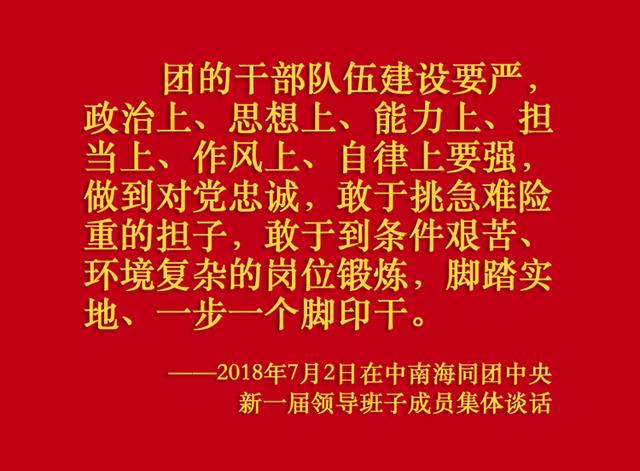6月26日,中共中央总书记、国家主席、中央军委主席习近平在中南海同团中央新一届领导班子成员集体谈话并发表重要讲话。