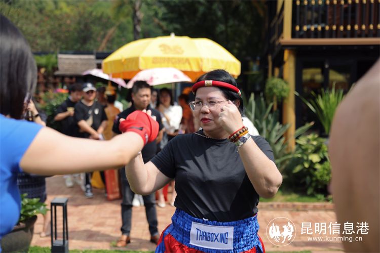 活动当天,泰国国家旅游局昆明办事处处长素虹出席推广活动并致辞,同时也现场参与泰拳体验。供图