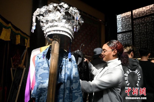 “Z世代”青年展示试穿的藏族服饰。李嘉娴 摄