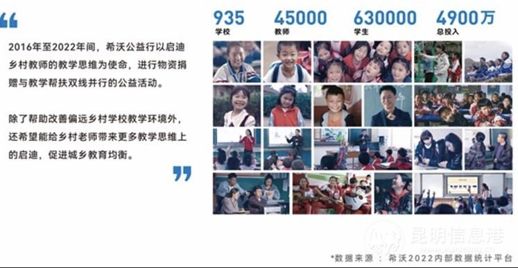2016年,希沃开始进行希沃公益行项目,聚焦基础教育教师成长和儿童关爱,七年来,“希沃公益行”将交互智能平板、视频展台、远程录播设备等硬件设施送到了20余个省份的乡村课堂,累计为935所学校捐赠教学设备,超过4.5万名老师、63万名学生享受到数字化教学的成果。