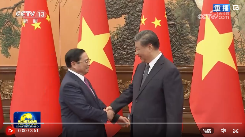 6月27日下午,国家主席习近平在人民大会堂会见来华进行正式访问的越南总理范明政。