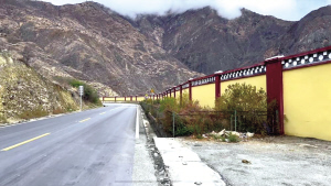 网友“旅行A计划”发布视频称,金沙江大湾观景台附近的214国道旁修了围墙 视频截图