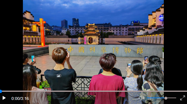 青年游客观看中国科举博物馆灯光演出。 新华社记者陈席元 摄