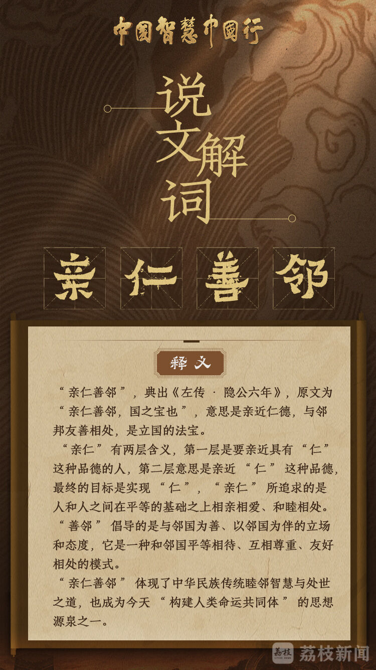 “亲仁善邻”体现了中华民族传统睦邻智慧与处世之道,也成为今天 “构建人类命运共同体”的思想源泉之一。
