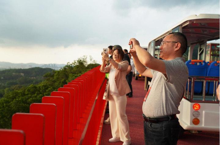 在虹桥公园,网媒总编们为光明区生态美景所折服。“光明的虹桥公园不愧是深圳的‘网红打卡地’,这座虹桥就像系在山谷间的‘红丝带’,令人印象深刻。”青岛新闻网总经理仇瑰丽赞叹道。