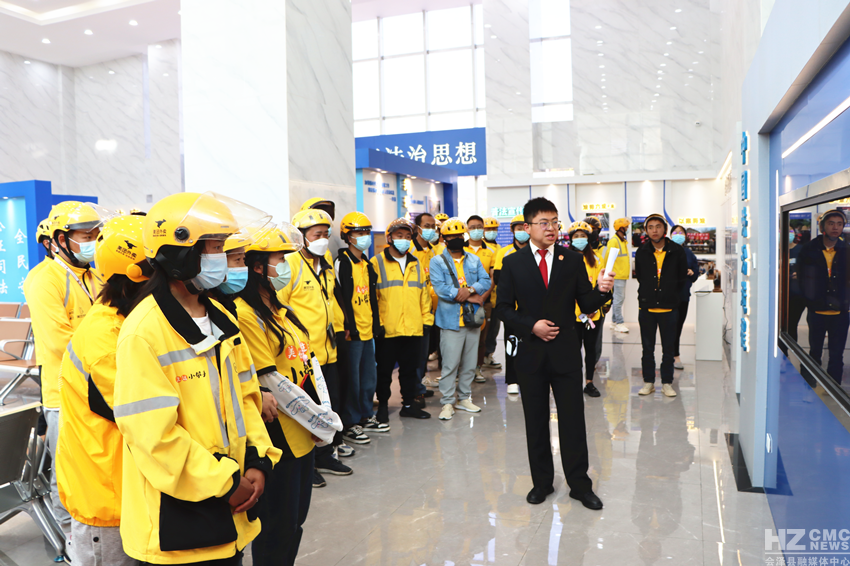 突出“实用性”和“流动性”,制作法治宣传“小红帽”、“小红旗”,印制特色法治标语及法院诉讼服务热线,依托群众及外卖骑手餐车打造深受群众喜爱的会泽法院流动普法标识。
