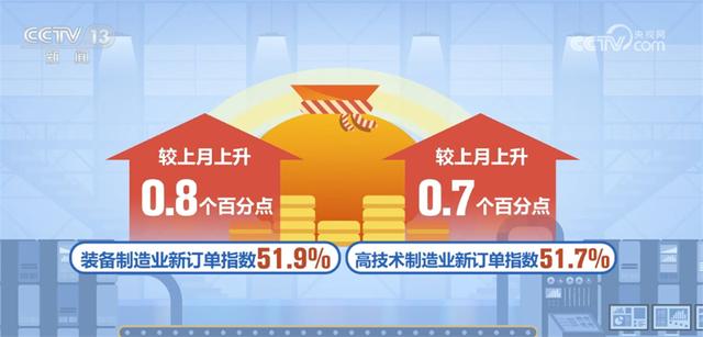 国家统计局服务业调查中心二级巡视员 史朝晖:尤其是装备制造业、高技术制造业扩张的力度,与上月相比是有所加大的,反映出随着产能升级发展的不断推进,中高端制造业对经济的引领作用还是比较突出的。