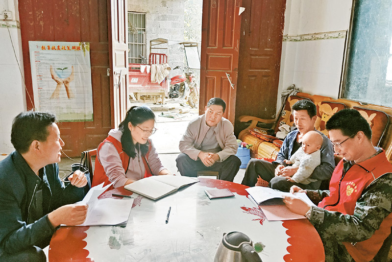 黄文秀研究生毕业后,主动请缨到贫困村任第一书记,把生命奉献给脱贫攻坚事业。习近平总书记强调广大党员干部和青年同志要以黄文秀同志为榜样,不忘初心、牢记使命,勇于担当、甘于奉献,在新时代的长征路上做出新的更大贡献。图为黄文秀(左二)下屯访问贫困户的资料照片。 新华社发