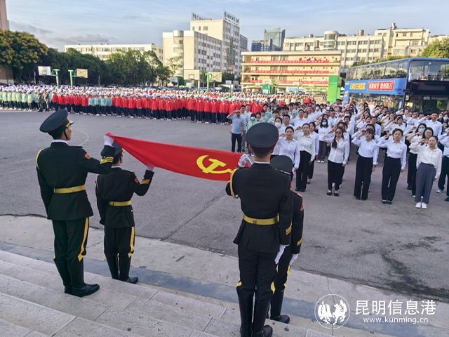 国旗升起,强国有我。在云南省经济管理学院运动场,“大党委”成员单位90余名党员及学校700余名青年学生,在响亮的国歌声中庄严肃穆地进行了升旗仪式,大家齐唱国歌,行注目礼,随着国旗的冉冉升起,大家心潮彭拜。随后“大党委”成员单位里19名新党员在党旗的见证下佩戴党徽,并和在场的全体党员一起重温了入党誓词,青年党员们表示“我心向党、永跟党走、强国有我”。