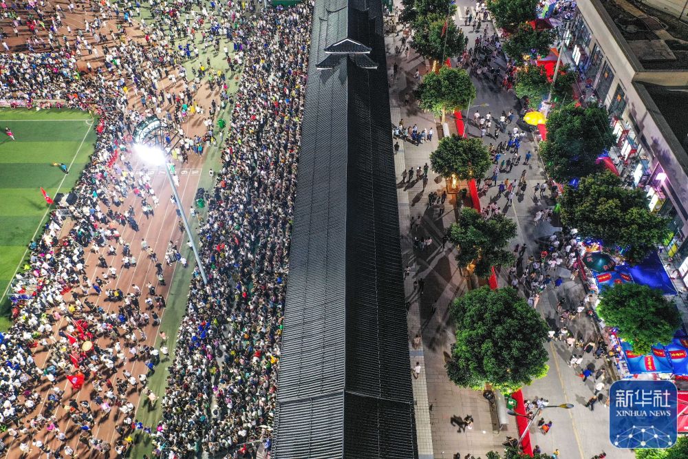 ↑7月1日,人们在贵州“村超”足球赛场旁的集市游玩。新华社记者 杨文斌 摄