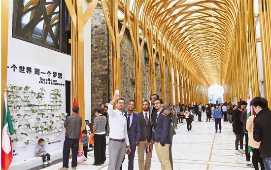 义乌国际商贸城,人流如织。尼泊尔商人必需努在此做生意逾20年,感觉义乌办事越来越便捷与智能,“有国际大都市的范儿”。