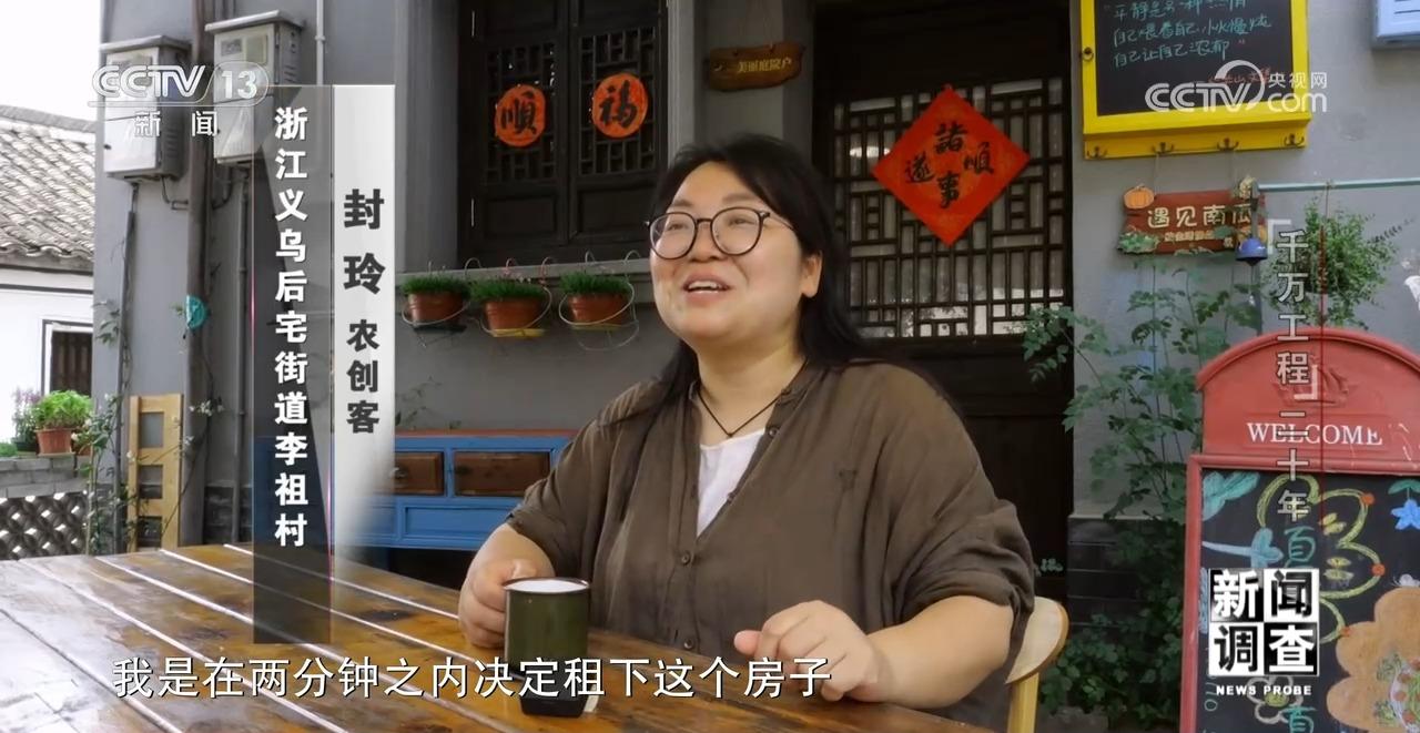 浙江义乌后宅街道李祖村农创客 封玲:我是在两分钟之内决定租下这个房子。当时是没有看到里面长什么样子,然后我就在那个下面看到这个楼梯,看到这种老房子,然后看到门口的栀子花树,我就说就它了。