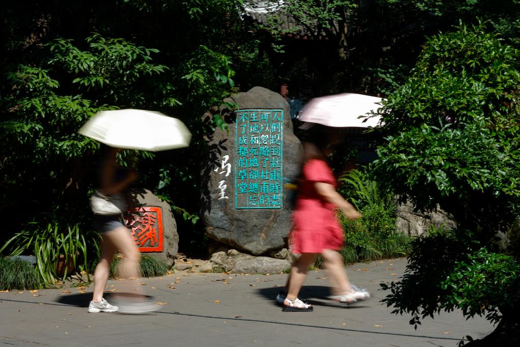 图为游客在成都的杜甫草堂游览。新华社记者 沈伯韩 摄