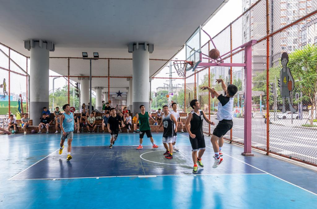 图为年轻人在成都市府青路立交下的运动空间打篮球。杜宁 摄