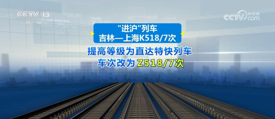“进沪”列车吉林—上海K518/7次提高等级为直达特快列车,车次改为Z518/7次。