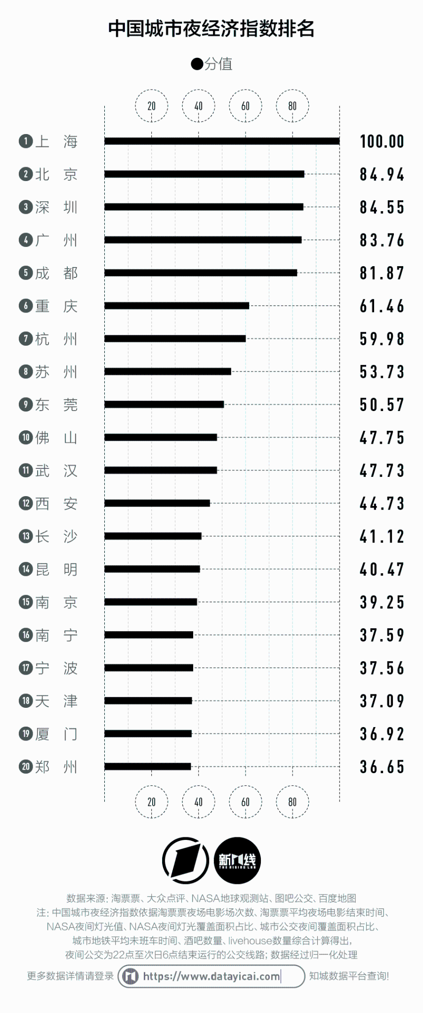 2017年起,第一财经·新一线城市研究所持续发布「知城·夜生活指数」,以观测不同城市在夜间的活跃程度,以及这座城市是否能给人们提供夜生活便利的条件,也为夜间业态的商业决策以及相关城市研究提供支持。