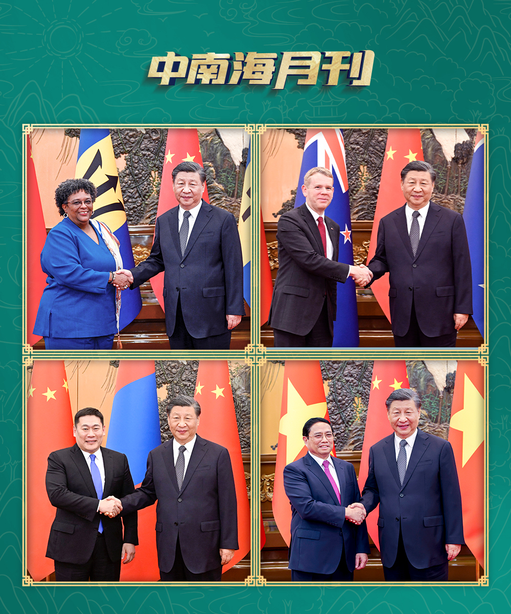 △6月27日,习近平分别会见了巴巴多斯总理莫特利(左上)、新西兰总理希普金斯(右上)、蒙古国总理奥云额尔登(左下)、越南总理范明政(右下)。