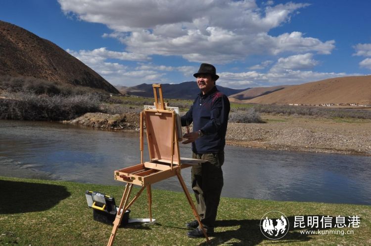 画家胡道昌在西藏写生