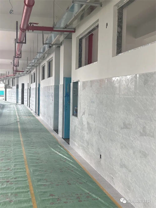 项目包含1栋教学楼、1栋报告厅、人防地下室及风雨操场,建成后可容纳学生1620人。目前教学楼外架已拆除,外立面装饰装修、弱电智能化布线已完成,室内装饰装修完成90%,精装修全部完成后将进行教学设施设备的安装工作。报告厅涉及超高支模工程,施工难度大,项目管理团队通过统筹资源、优化设计,在施工现场每天投入工人200余名,于5月29日提前完成封顶任务。同时,项目利用技术手段优化施工工艺流程,提前插入报告厅二次结构施工和室外管网工程,保证施工高效进行。目前项目已进入冲刺关键期,为确保新建的学校让群众满意,在大干快上、抢抓工期的同时,项目严格落实安全生产责任和质量管理要求,将现场安全文明及施工质量纳入常态化管理,加强临边、洞口防护措施,坚持样板引路,明晰质量工艺要求,确保如期交付、优质履约。该项目是昆明市推进巫家坝城市新中心项目建设以来,按照省级示范学校标准新建的首个项目,建成后将有效改善周边教学质量、解决当地大量适龄学子的上学问题。