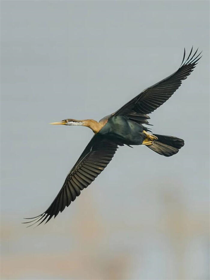 飞翔中的黑腹蛇鹈 杨学飞摄影