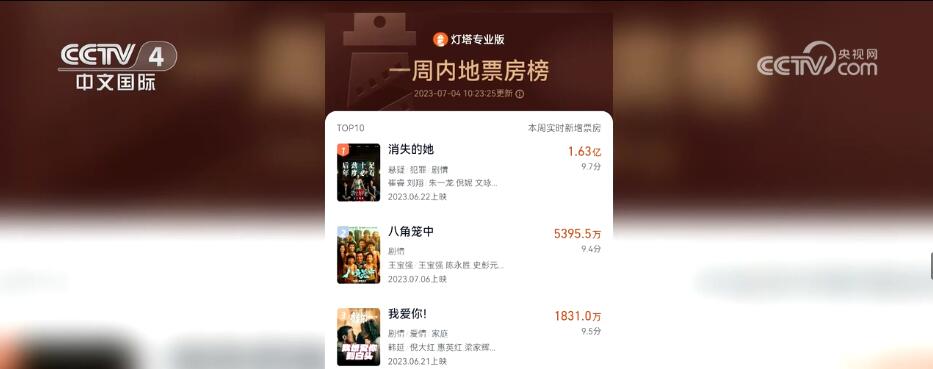 最新统计数据显示,国产影片《满江红》《流浪地球2》《消失的她》成为今年上半年电影总票房前三,充分显示了其目前在中国内地院线的主导地位。春节档后,时隔146天,7月1日的单日电影大盘票房再破4亿元。其中,影片《消失的她》总票房破20亿元。截至目前,据灯塔专业版数据,电影《消失的她》上映13天,总票房已达24.6亿元。
