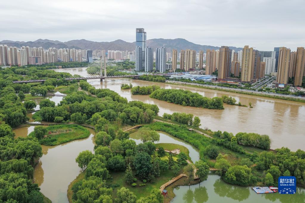 盛夏时节,位于甘肃省兰州市安宁区的银滩湿地公园绿意盎然、空气清新。
