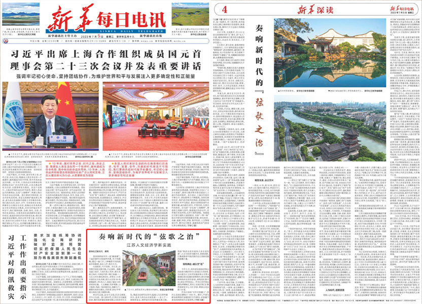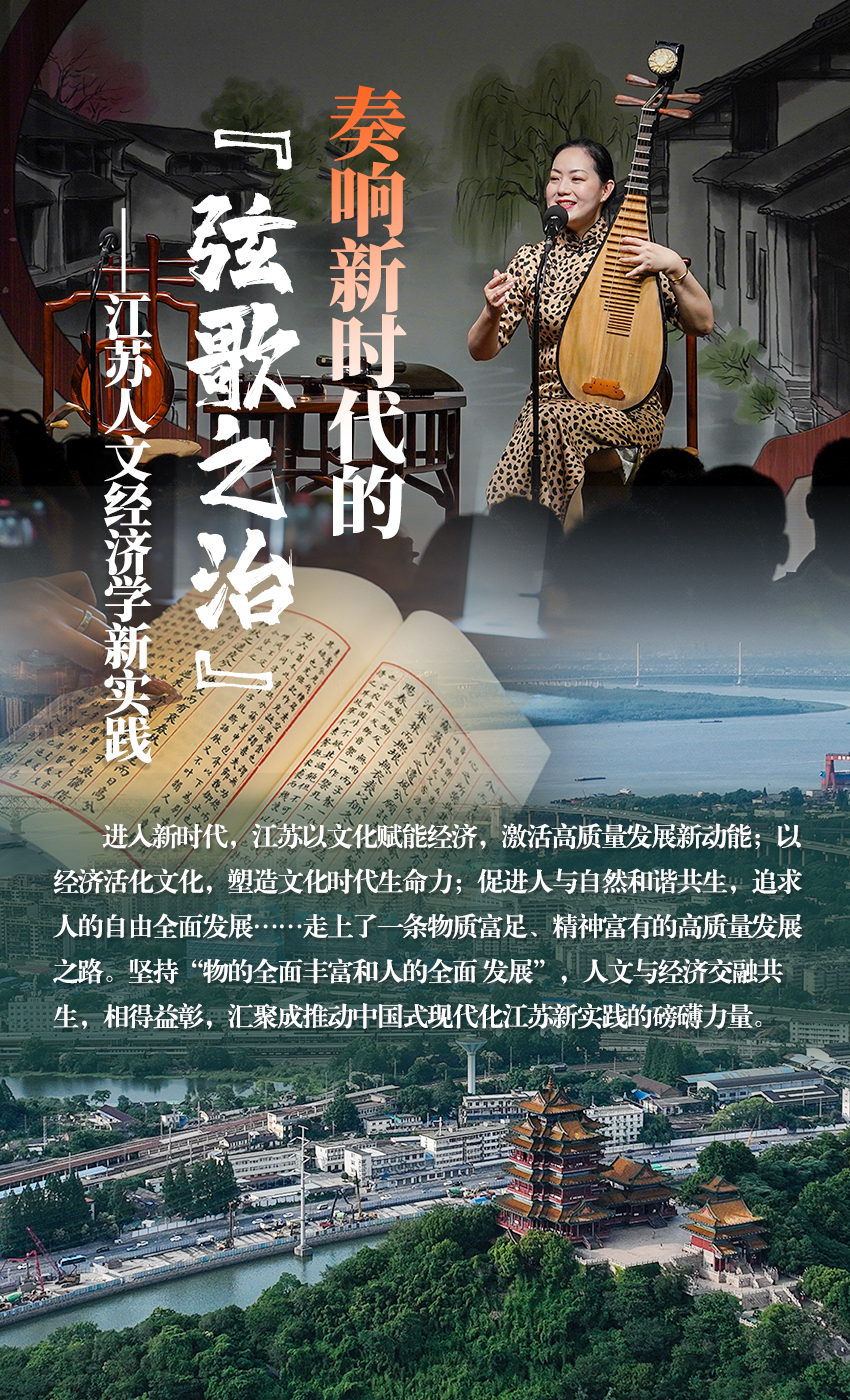 承百代之流,会当今之变;以古之规矩,开今之生面。进入新时代,江苏以文化赋能经济,激活高质量发展新动能;以经济活化文化,塑造文化时代生命力;促进人与自然和谐共生,追求人的自由全面发展……走上了一条物质富足、精神富有的高质量发展之路。坚持“物的全面丰富和人的全面发展”,人文与经济交融共生,相得益彰,汇聚成推动中国式现代化江苏新实践的磅礴力量。