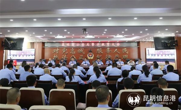 昆明信息港讯 记者合宇聪 7月3日上午,嵩明县公安局召开全局民警辅警警示教育大会。