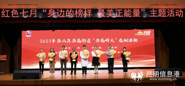 昆明信息港讯 记者徐毅杰 汇聚好人力量,点亮文明之光。7月6日,西山区西苑街道红色七月“身边的榜样 最美正能量”主题活动在西山区文化馆举行,活动对“西苑好人”“两优一先”代表““最美志愿者”“最美志愿服务组织”等进行表扬,传递了最美西苑正能量。这既是一场好人相聚的盛会,也是一次弘扬和传承好人精神的持续接力。